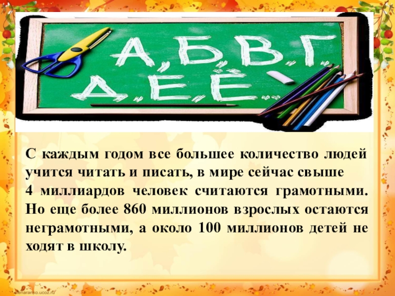 Это сайт презентаций, где можно хранить и обмениваться своими презентациями, докладами, проектами, шаблонами в формате PowerPoint с другими пользователями. Мы помогаем школьникам, студентам, учителям, преподавателям хранить и обмениваться учебными материалами.