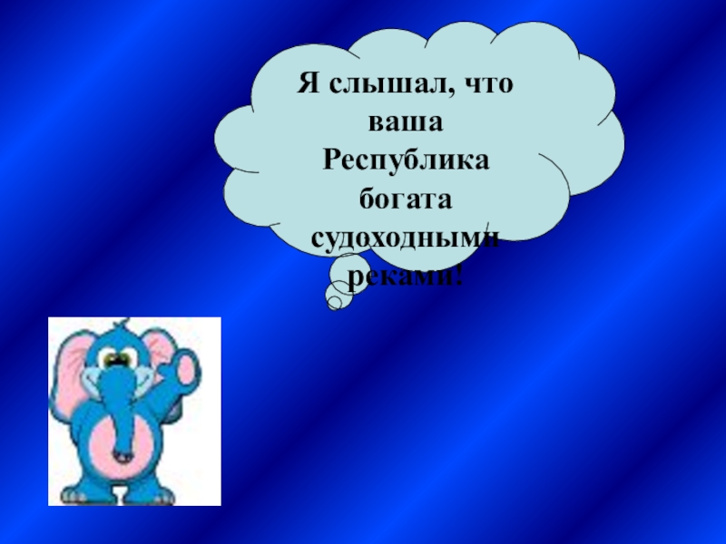 Слайд 27Я слышал, что ваша Республика богата судоходными реками!