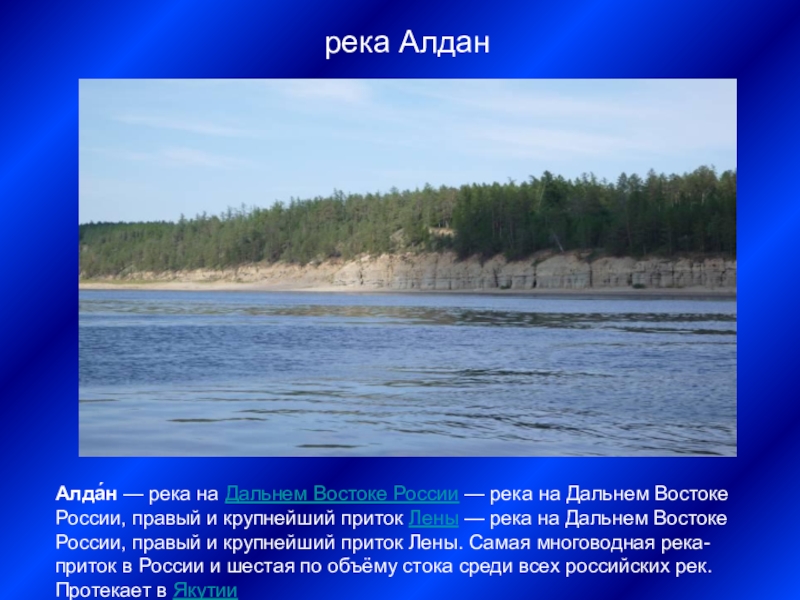 Алда́н — река на Дальнем Востоке России — река на Дальнем Востоке России, правый