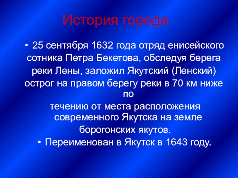 реки Лены, заложил Якутский (Ленский)