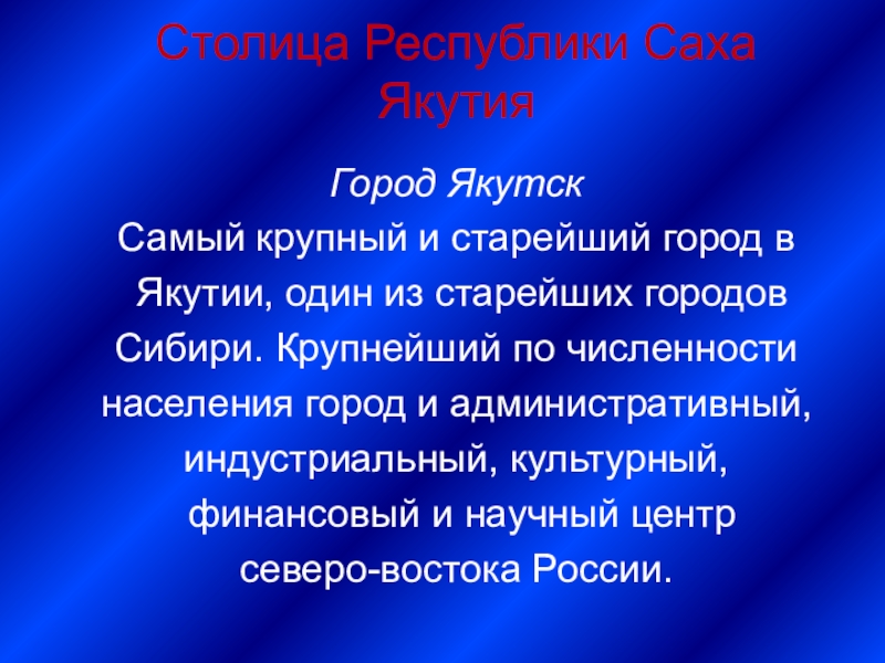Слайд 10Столица Республики Саха (Якутия)