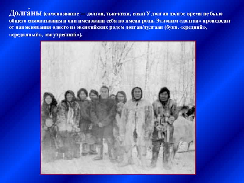 Слайд 23Долга́ны (самоназвание — долган, тыа-кихи, саха) У долган долгое время не