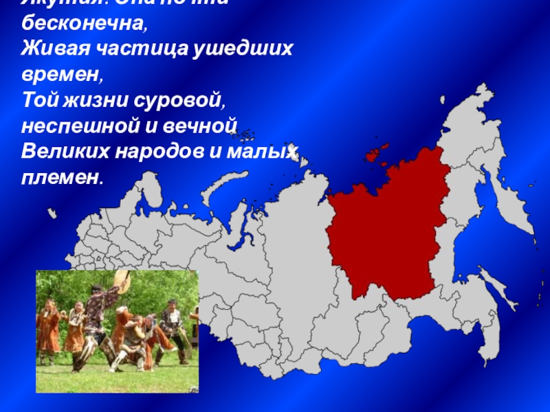 Слайд 4Якутия! Она почти бесконечна,