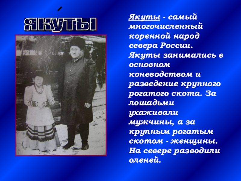 Якуты - самый многочисленный коренной народ севера России. Якуты занимались