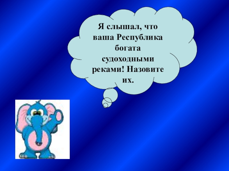 Слайд 78Я слышал, что ваша Республика богата судоходными реками! Назовите их.