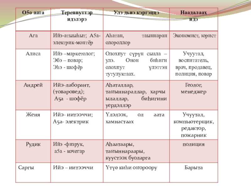 Төрөппүттэрбит, биир дойдулаахтарбыт идэлэрин туhунан билистибит