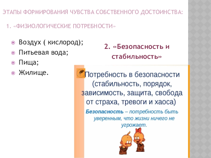 Слайд 6 этапы формирования чувства собственного достоинства: