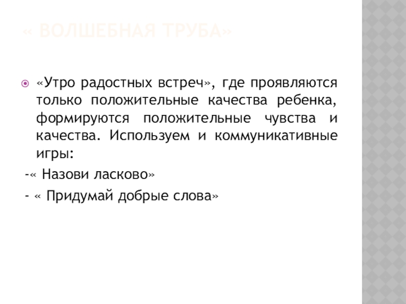 «Утро радостных встреч», где проявляются только положительные качества ребенка,