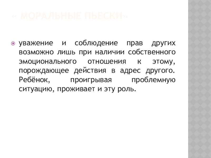 собственного эмоционального отношения к этому, порождающее действия в адрес другого. Ребёнок, проигрывая проблемную ситуацию, проживает и эту роль.