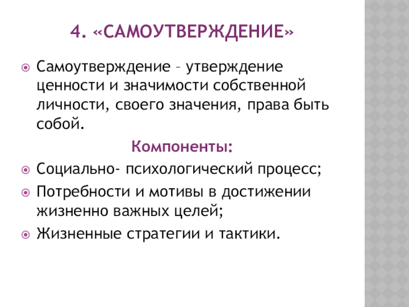Самоутверждение – утверждение ценности и значимости собственной личности, своего