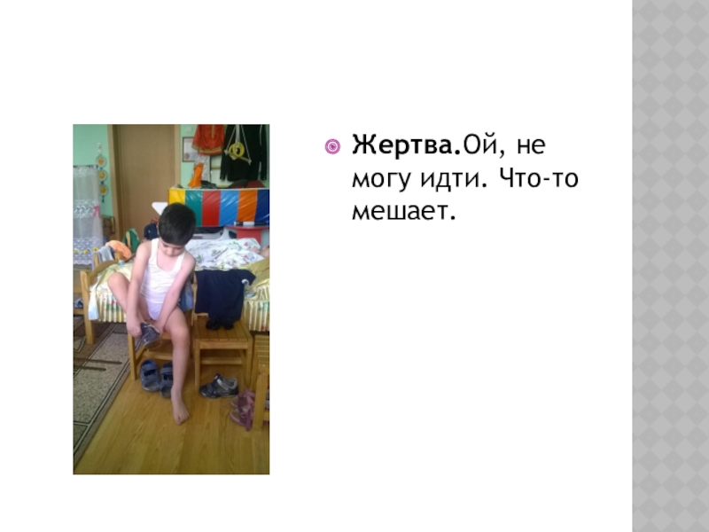 Слайд 18Жертва.Ой, не могу идти. Что-то мешает.
