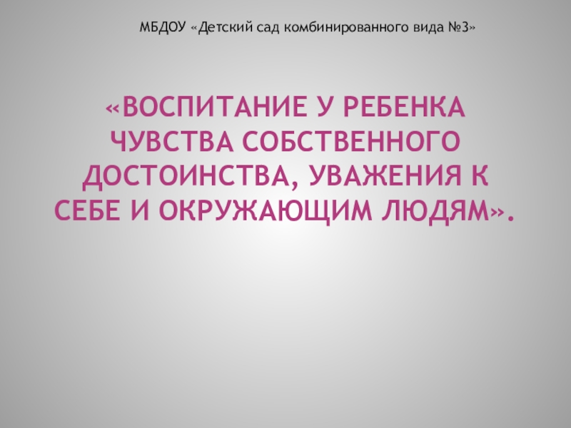 Слайд 1«Воспитание у ребенка чувства собственного достоинства, уважения к себе и окружающим людям».