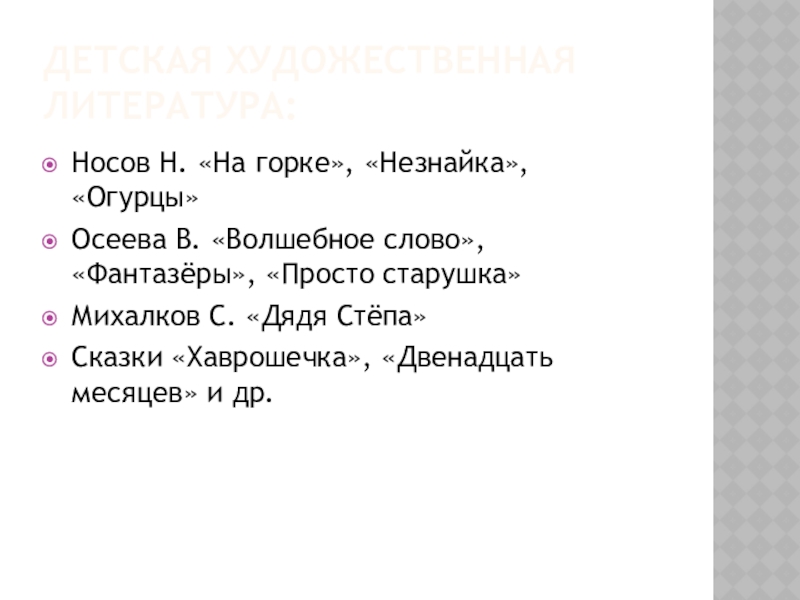 Носов Н. «На горке», «Незнайка», «Огурцы»