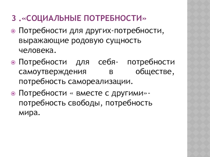 Потребности « вместе с другими»-потребность свободы, потребность мира.