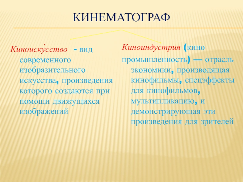 промышленность) — отрасль экономики, производящая кинофильмы, спецэффекты для кинофильмов, мультипликацию, и демонстрирующая эти произведения для зрителей