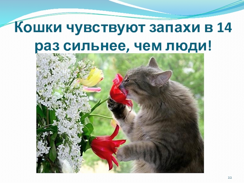 Слайд 22Кошки чувствуют запахи в 14 раз сильнее, чем люди!