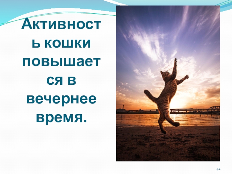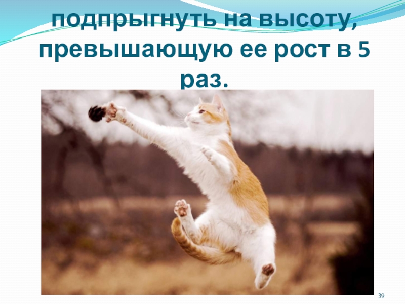 Слайд 39Кошка способна подпрыгнуть на высоту, превышающую ее рост в 5 раз.