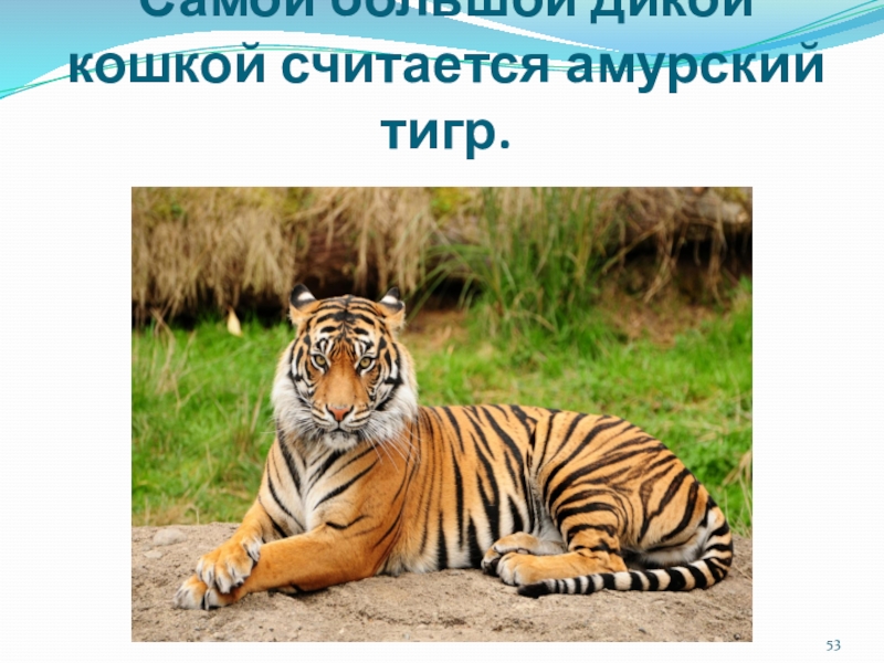 Слайд 53Самой большой дикой кошкой считается амурский тигр.