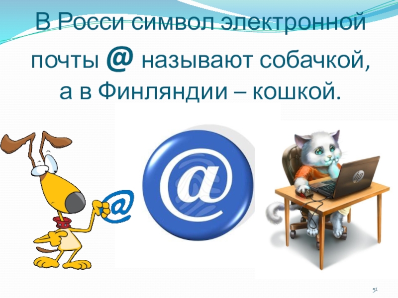 Слайд 51В Росси символ электронной почты @ называют собачкой,