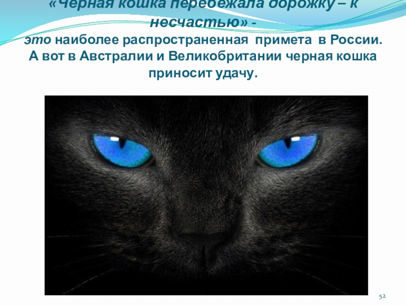 Слайд 52«Черная кошка перебежала дорожку – к несчастью» -