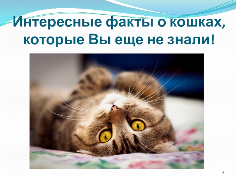 Слайд 4Интересные факты о кошках, которые Вы еще не знали!