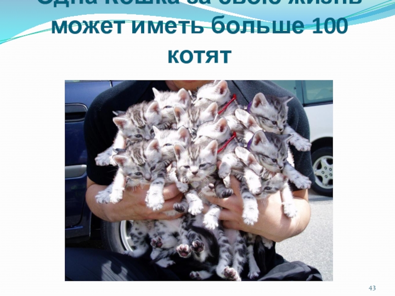 Слайд 43Одна Кошка за свою жизнь может иметь больше 100 котят