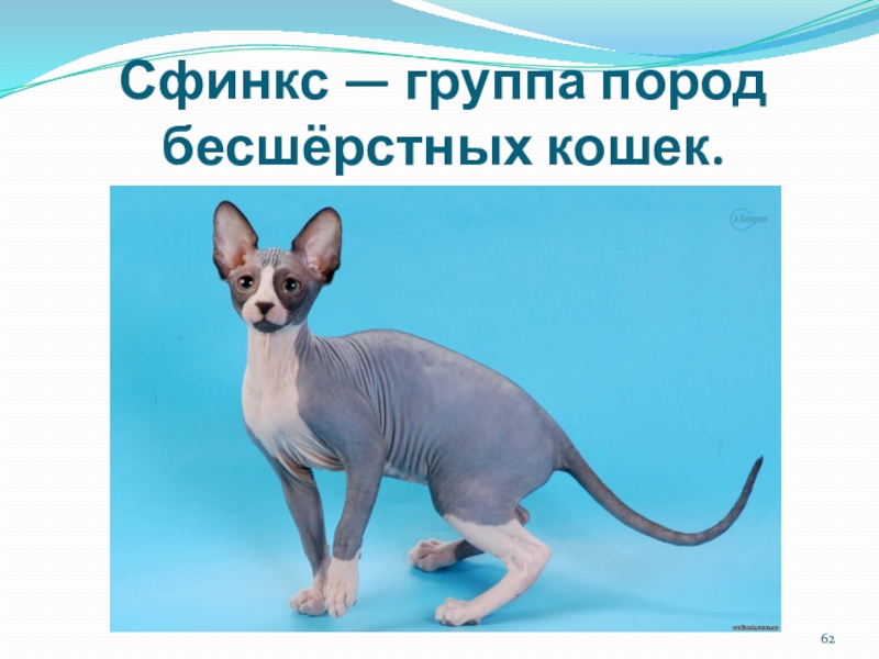 Слайд 62Сфинкс — группа пород бесшёрстных кошек.