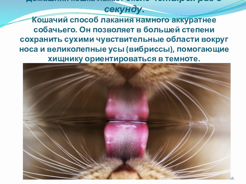 Слайд 26Домашняя кошка лакает около четырёх раз в секунду.