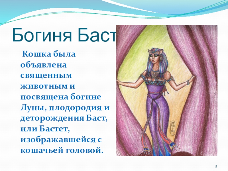Луны, плодородия и деторождения Баст, или Бастет, изображавшейся с кошачьей головой.