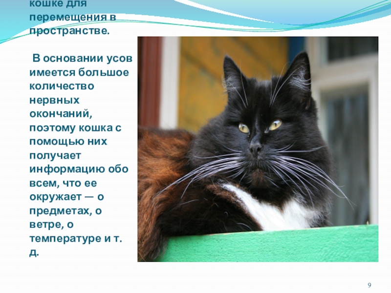 Слайд 9Усы, необходимы кошке для перемещения в пространстве.