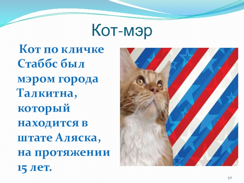 Кот по кличке Стаббс был мэром города Талкитна, который