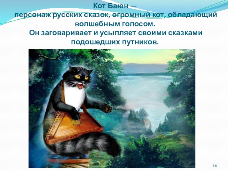персонаж русских сказок, огромный кот, обладающий волшебным голосом.