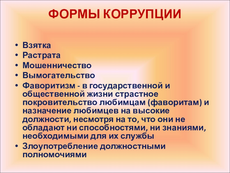 Слайд 11ФОРМЫ КОРРУПЦИИ