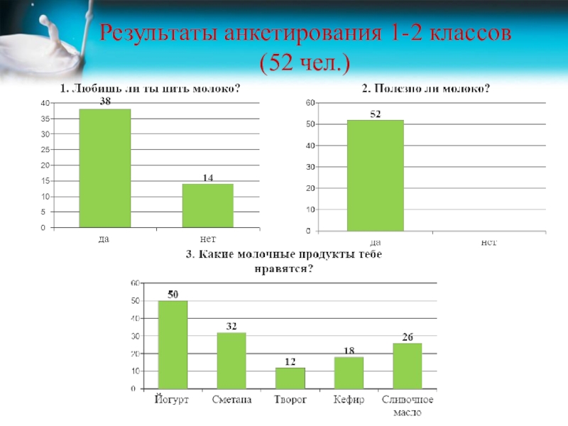 Провести анкетирование учащихся 1-2 классов для выявления уровня их знаний о полезных свойствах молока.