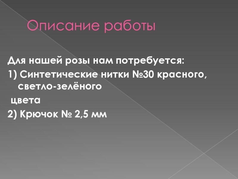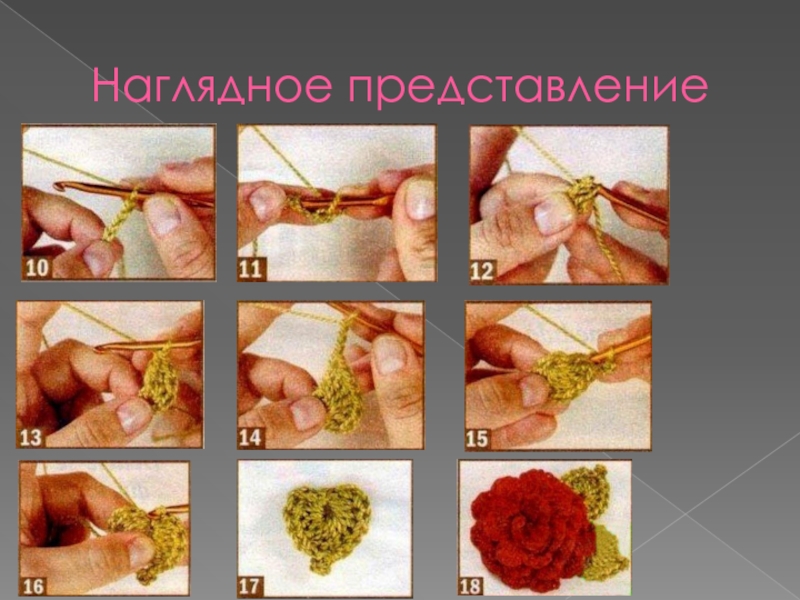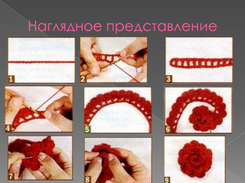 В наши дни это искусство продолжает развиваться, обогащаясь новыми мотивами, композиционными приемами, современными материалами. Ручное вязание выгодно отличается от других видов рукоделия. Особенно оно привлекательно тем, что исходный материал – пряжу – можно использовать несколько раз и без особых потерь. Ручное вязание позволяет изготовлять неповторимые, уникальные модели. Возможности крючка позволяют изготовить различные декоративные вещи, например, кружева, покрывала, одежду, игрушки, украшения. Действительно, в настоящее время очень трудно представить наш гардероб без трикотажа.