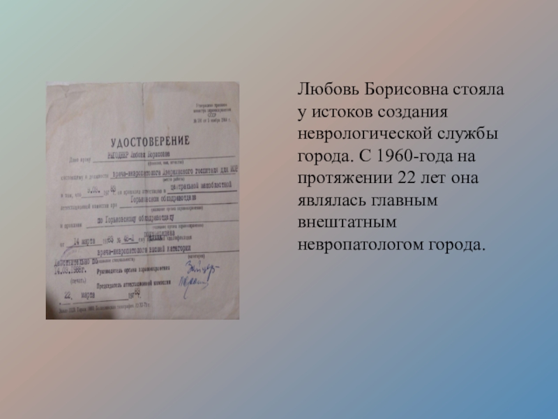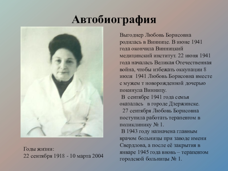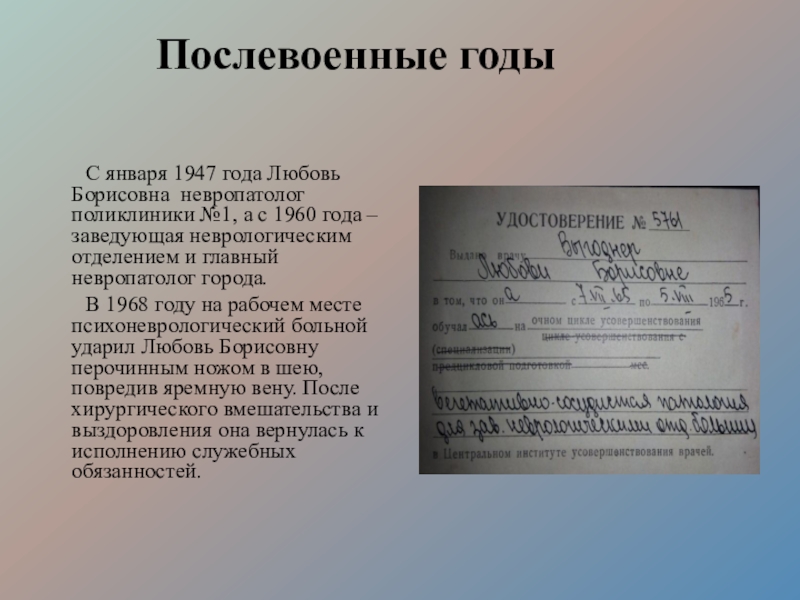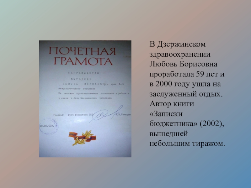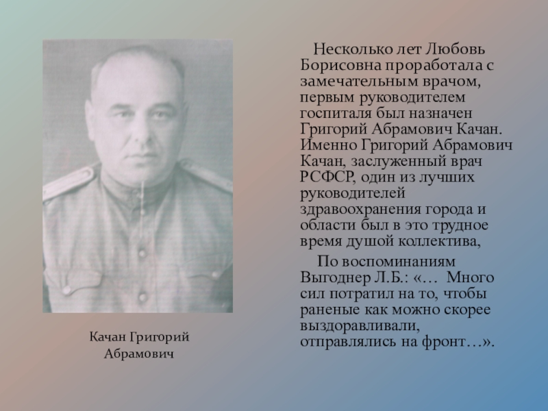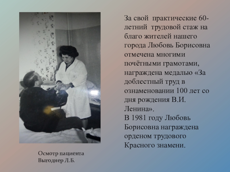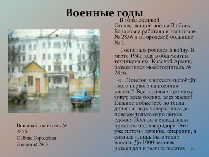 Борисовна работала в госпитале № 2856 и в Городской больнице № 1.