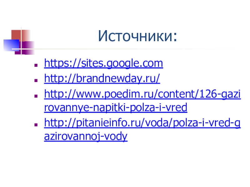 Слайд 1Польза и вред газированных напитков