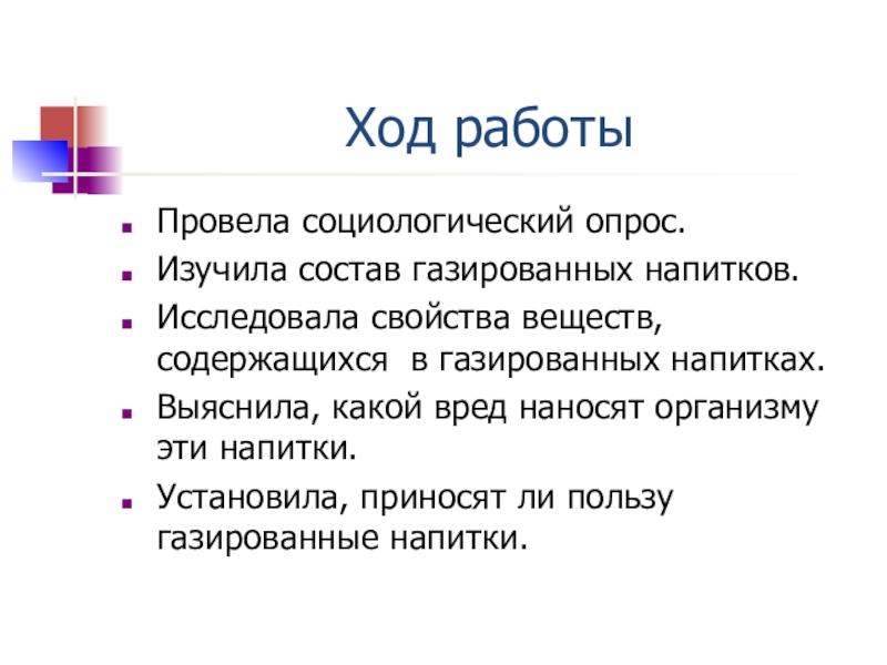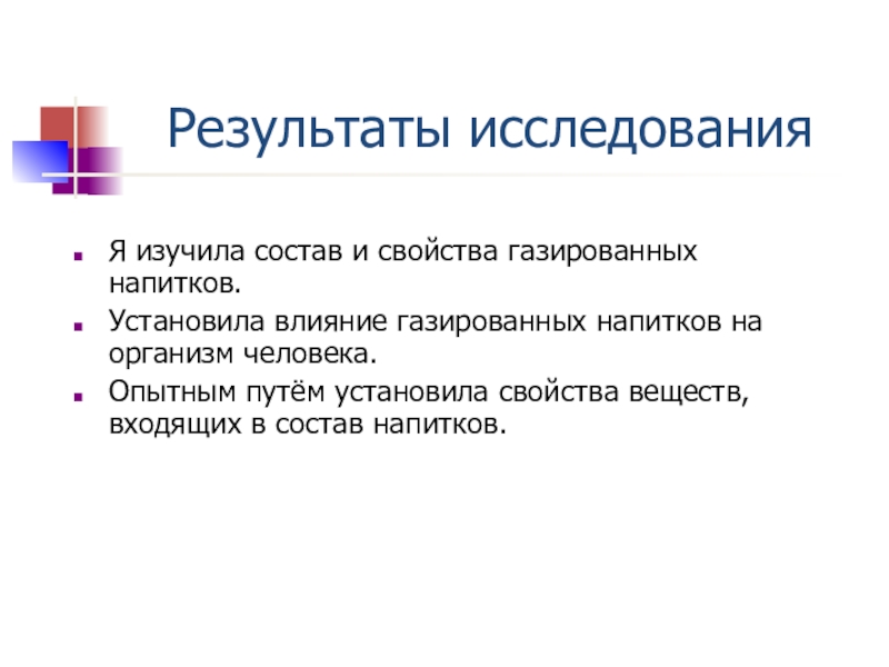 Я изучила состав и свойства газированных напитков.