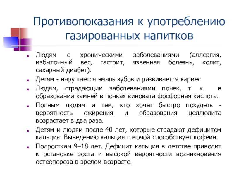 Слайд 19Противопоказания к употреблению газированных напитков