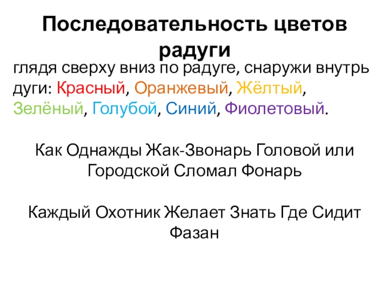 Слайд 15Последовательность цветов радуги