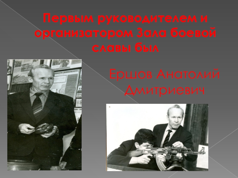 Первым руководителем и организатором Зала боевой славы был  Ершов Анатолий  Дмитриевич