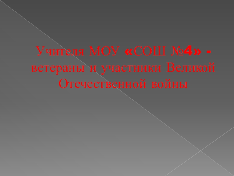 Слайд 15Учителя МОУ «СОШ №4» - ветераны и участники Великой Отечественной войны