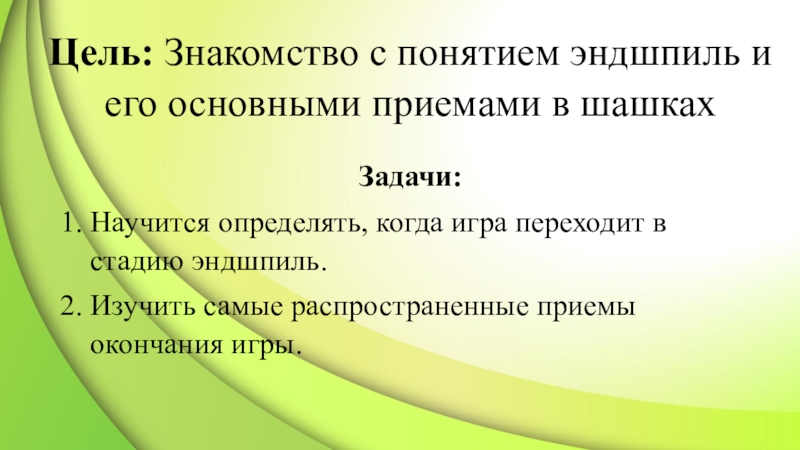 Изучить самые распространенные приемы окончания игры.