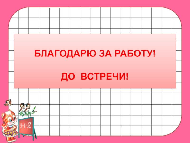 БЛАГОДАРЮ ЗА РАБОТУ!  ДО ВСТРЕЧИ!