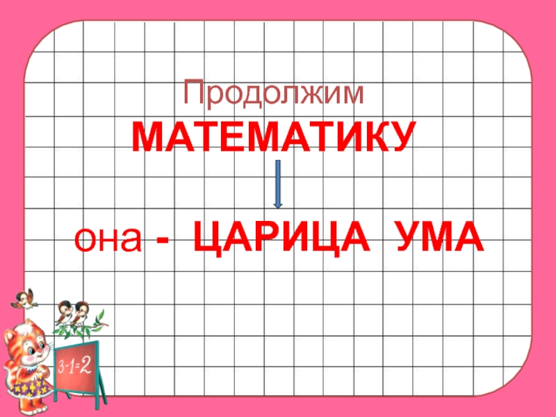 Слайд 11Продолжим МАТЕМАТИКУ она - ЦАРИЦА УМА