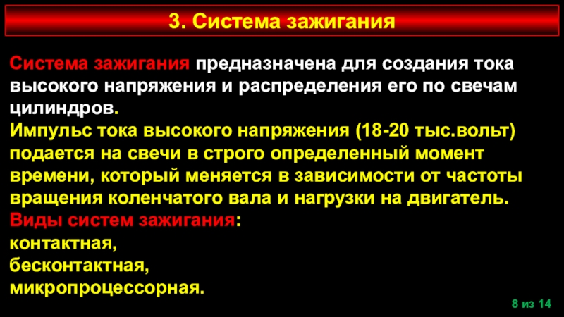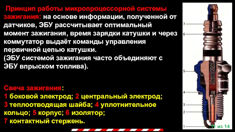 Принцип работы микропроцессорной системы зажигания: на основе информации, полученной от датчиков, ЭБУ рассчитывает оптимальный момент зажигания, время зарядки катушки и через коммутатор выдаёт команды управления первичной цепью катушки.