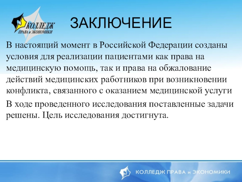 Предмет исследования являются нормы гражданского права, общая и специальная литература, регулирующая гражданские правоотношения, складывающаяся в сфере защиты прав медицинских услуг