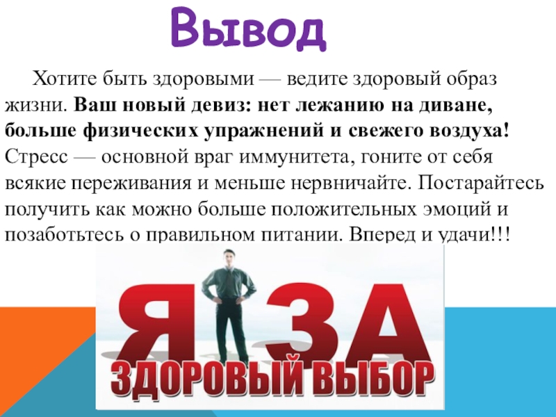 Слайд 13 Хотите быть здоровыми — ведите здоровый образ жизни. Ваш новый девиз: