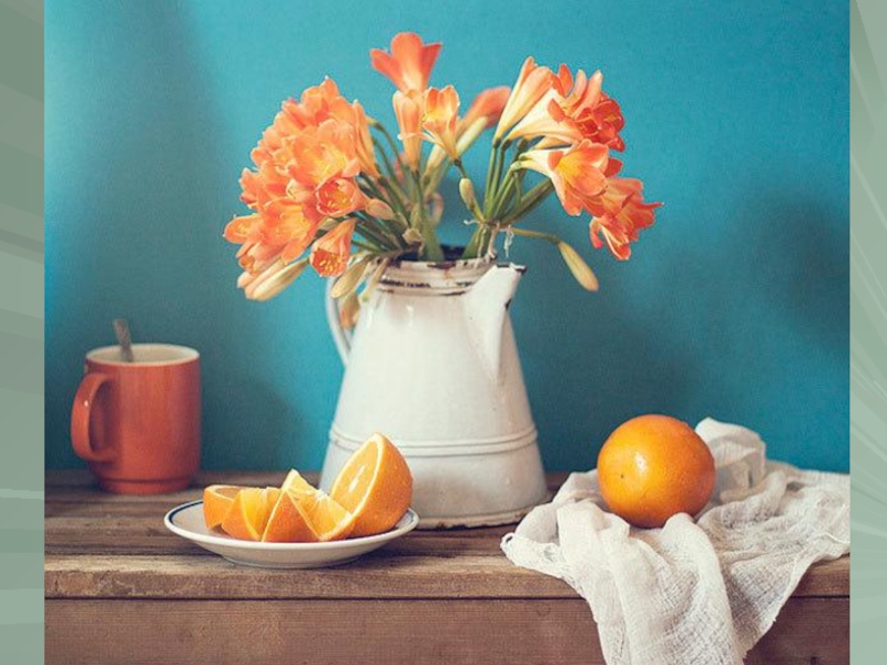 различные неодушевленные объекты, изделия либо товары: художественные изделия, посуда, цветы, фрукты и пр.