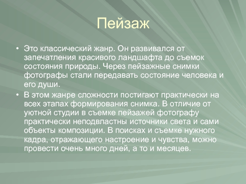 состояния природы. Через пейзажные снимки фотографы стали передавать состояние человека и его души.